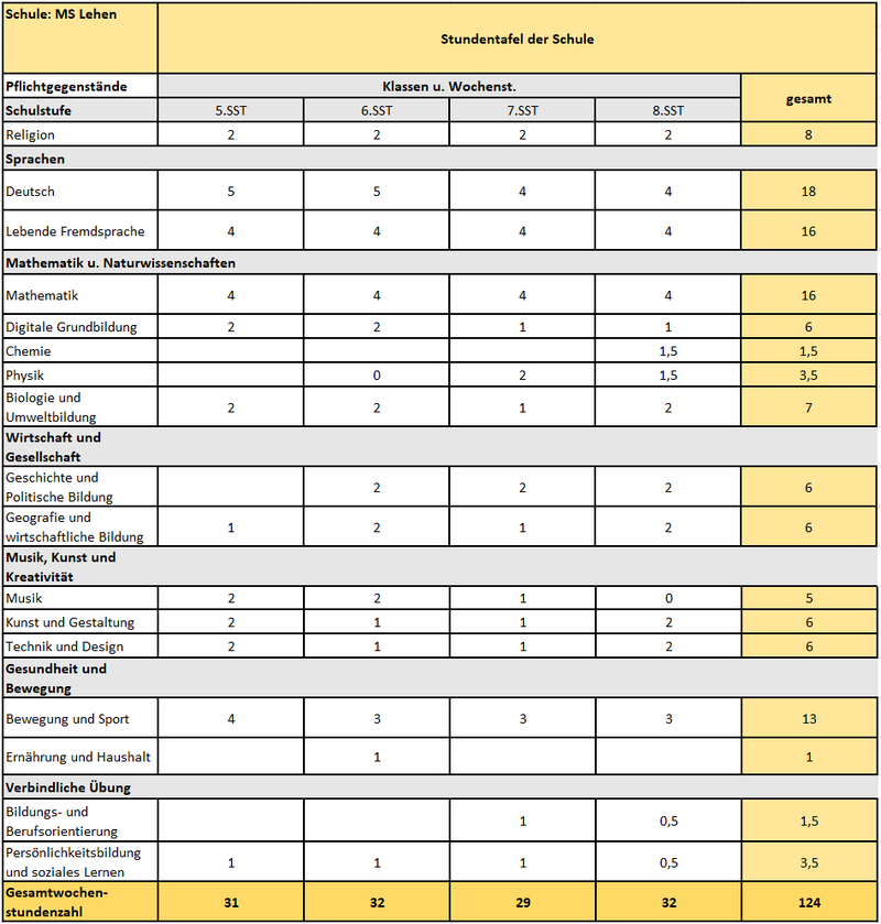 Stundentafel